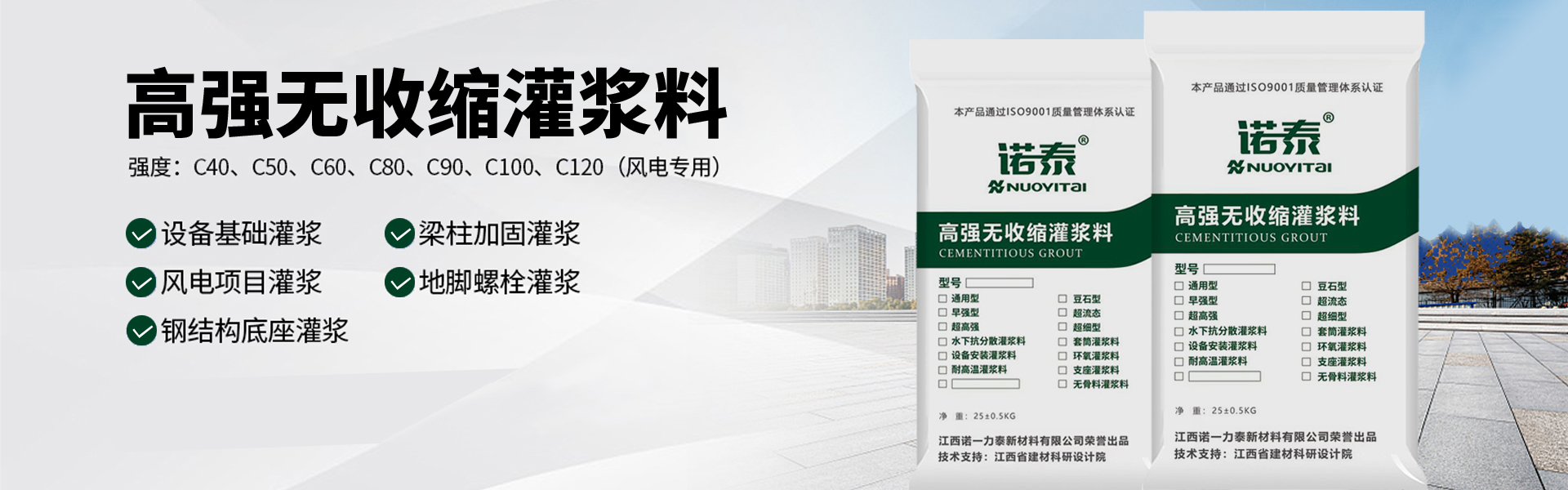 江西諾一力泰新材料有限公司位于江西宜春奉新縣,是專業從事灌漿料、水泥路面修補砂漿、抗裂砂漿、防水砂漿、保溫砂漿、隔聲砂漿、粘結砂漿等砂漿系列產品生產銷售的廠家。